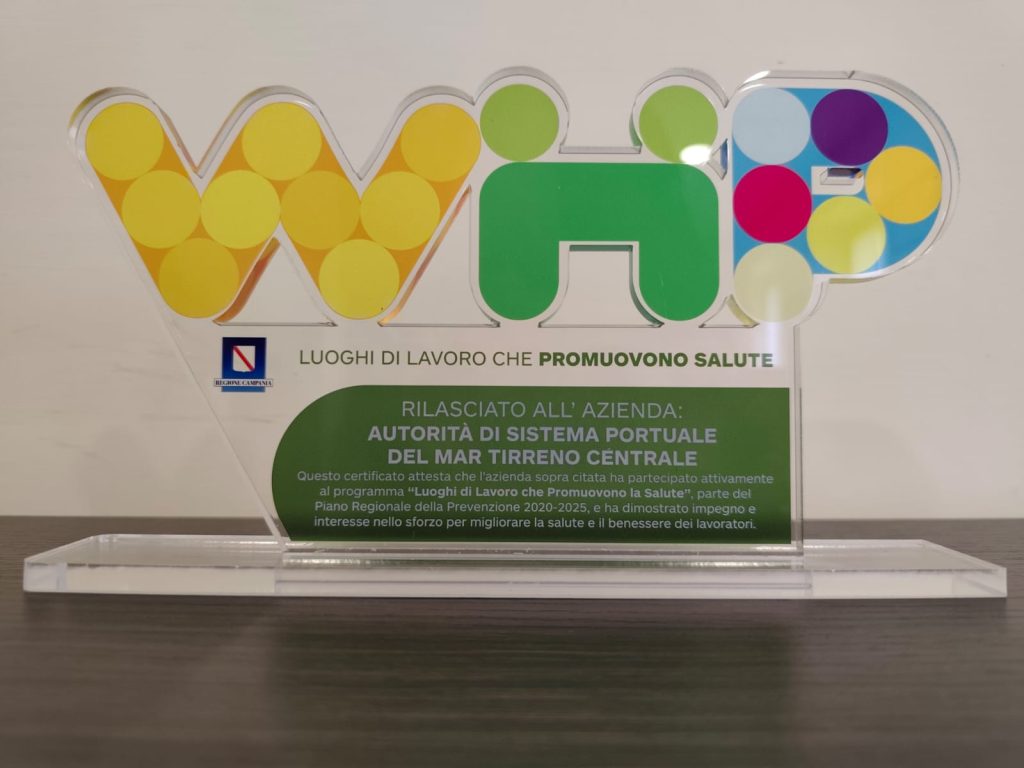 Nel corso dell’evento, l’Autorità di Sistema Portuale del Mar Tirreno Centrale ha ricevuto la certificazione regionale di “Luogo di Lavoro che Promuove Salute”, accompagnata dalla consegna di una targa di riconoscimento per l’impegno profuso nella promozione della salute e del benessere nei luoghi di lavoro durante l’annualità 2025.